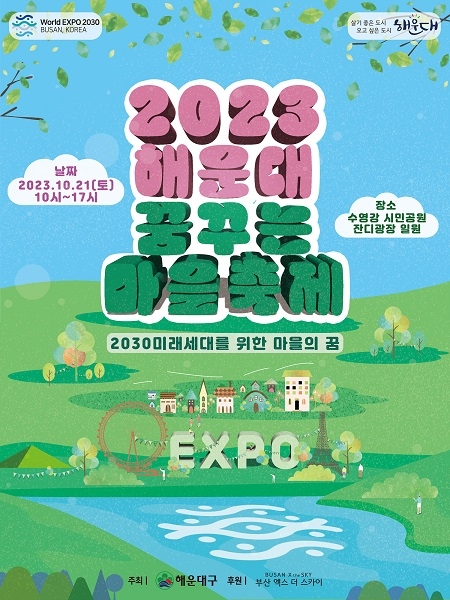 부산 해운대구가 오는 21일 수영강시민공원 일원에서 ‘2023 꿈꾸는 마을축제’를 개최한다. 주민자치, 복지, 평생학습을 망라한 축제로 코로나로 중단했다가 지난해 재개해 올해 3회째를 맞는다.