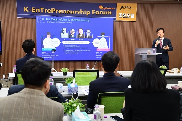 진주시는 17일 오전 7시 서울 서초구 한국자동차산업협동조합에서 개최한 '진주 K-기업가정신 상설 영어 포럼'에 조규일 시장이 연사로 초청을 받아 최근에 새로운 시대정신으로 주목받고 있는 진주 K-기업가정신에 대한 영어 특강을 했다고 밝혔다.