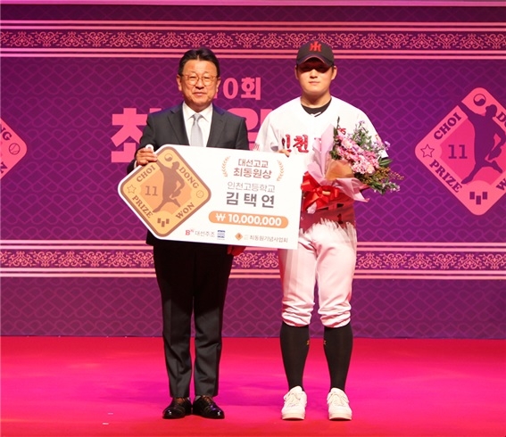 대선주조 조우현 대표는 “한국야구를 한 단계 발전시킬 인재들에게 꿈과 희망을 전할 수 있어 기쁘다. 김택연 군이 프로 무대에서도 눈부신 활약을 펼치길 바란다”고 전했다.