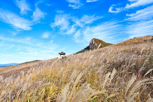 24일 경남 산청군 차황면 황매산 억새가 바람에 흔들리며 깊어가는 가을 풍경을 은빛으로 진하게 물들이고 있다. 산청 황매산은 정상부에 고즈넉한 멋을 풍기는 황매산성과 걷기 좋은 데크길이 이어져 있어 가을을 느끼기에 안성맞춤이다. (사진=산청군 제공)
