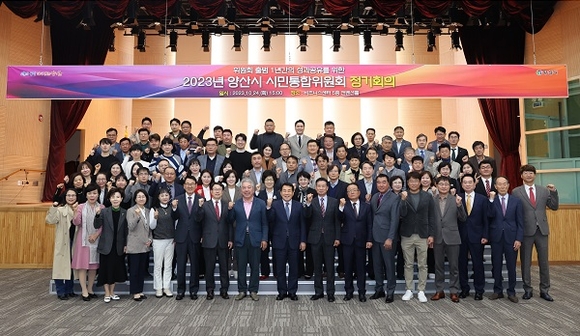 출범 1년을 맞은 양산시 시민통합위원회가 24일 양산비즈니스센터 컨벤션홀에서 5개 분과 100명의 전체 위원이 참여하는 정기회의를 가졌다.