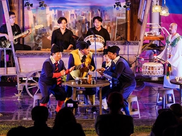 광대극 '당골포차'는 단군신화를 모티브로 한 창작 연희극으로 사람답지 않은 삶을 사는 현재의 우리를 포장마차라는 삶의 공간 속에서 유쾌하게 풀어낸다.