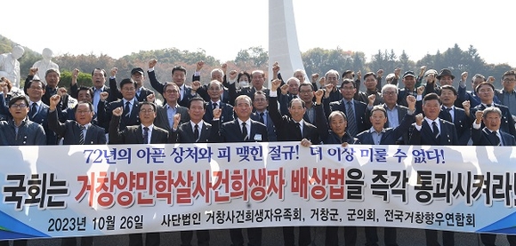 구 군수는 추모사를 통해 “지난해 대법원은 유족들이 국가를 상대로 낸 손해배상 청구소송에서 '거창사건'은 민간인 집단 희생사건으로 소멸시효가 적용되지 않는다고 판결한 만큼, 하루빨리 배·보상 문제가 해결되기를 바란다”며 “거창군에서도 거창사건의 진실을 알리는 적극적인 활동을 통해 배·보상법이 통과될 수 있도록 노력하겠다”고 말했다.