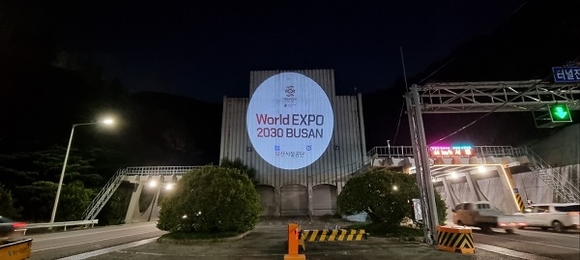 광안터널, 황령터널, 장산1,2터널 등 부산시내 주요 터널입구에는 대형 고보라이트로 2030 엑스포 홍보가 한창이다.