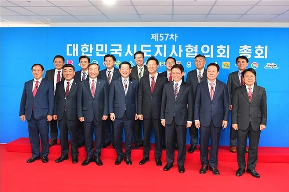 27일 경북도청에서 열린 ‘제57차 대한민국시도지사협의회 총회’ 참석자들이 기념촬영을 하고 있다.(사진=부산시 제공)
