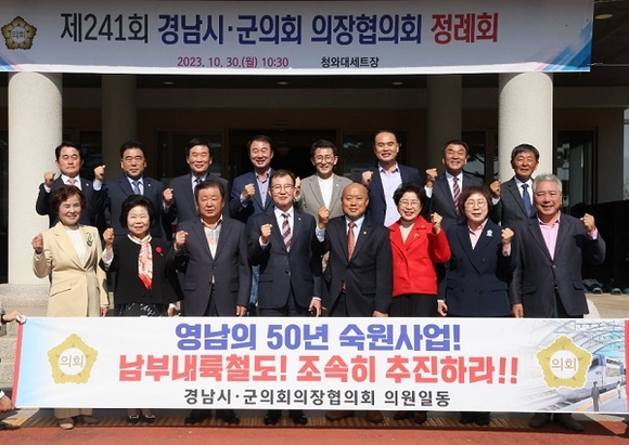 협의회는 합천군의회에서 발의한 경남 지역의 50년 숙원사업인 남부내륙철도 사업의 적정성 재검토 철회와 조기착공 건의안에 대해 참석한 회원 간의 큰 이견없이 가결돼 정부 부처에 건의할 계획이다.