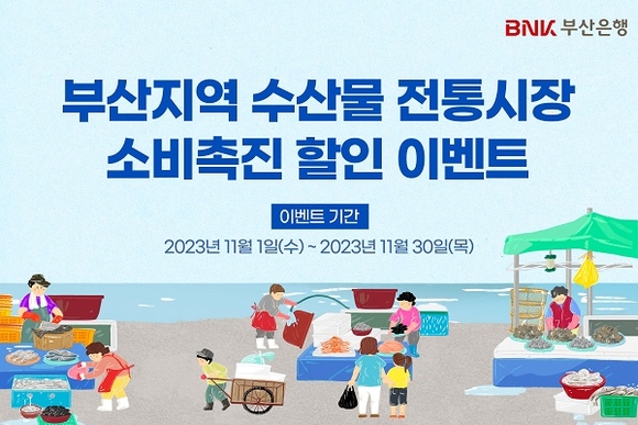 BNK부산은행이 1일 부산지역 수산물 전통시장의 소비촉진을 위해 개인 신용·체크카드 고객을 대상으로 ‘같이하場(장) 부산수산물전통시場(장) BC와 부산은행이랑 海(해) 온누리랑 海(해)’ 할인 이벤트를 실시한다고 밝혔다.