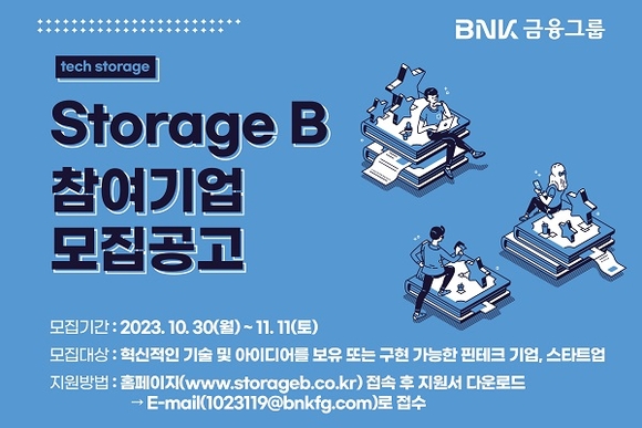 BNK금융그룹이 핀테크 및 스타트업과 함께 본격적인 그룹 비즈니스 모델 확장에 나섰다. 이를 위해 그룹 차원의 ‘Storage B’ 프로그램을 신설하고 오는 11일까지 참여업체를 모집한다.