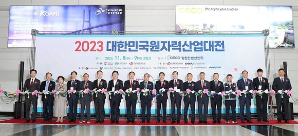 경남 창원시는 '2023 대한민국원자력산업대전'이 8일 CECO에서 두산에너빌리티와 한국수력원자력 등 국내 원자력 대기업을 포함해 40여 개 원전기업이 참가한 가운데 막을 올렸다고 밝혔다.