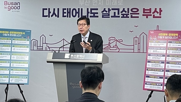 박형준 부산시장은 9일 오전 시청 브리핑룸에서 기자회견을 열고 내년도 예산안을 4개 분야로 나눠 설명했다.