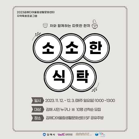 김해문화재단 김해다어울림생활문화센터(이하 센터)는 차와 음식을 매개로 한 문화소통 프로그램 '소소한 식탁'에 참여할 김해시민을 모집한다.