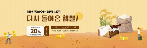 먼저 e경남몰에서 올해산 햅쌀기획전(11~17일)과 겨울 보양식 기획전(11~30일)을 통해 20% 할인(최대 1만원) 혜택을 주는 '경남 세일페스타'를 연다.