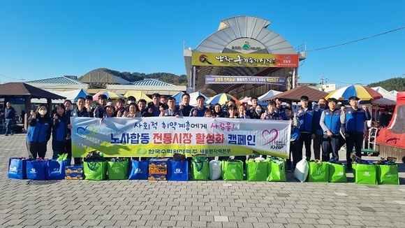 한국수력원자력 새울원자력본부 노사가 13일 남창 옹기종기 전통시장에서 울주군 소재 경로식당에 전달할 생필품 구매를 위한 장보기 행사를 시행했다.