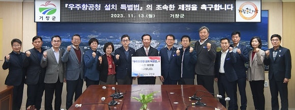 구인모 거창군수가 13일 '우주항공청 설치 특별법'의 제정을 촉구하는 결집력을 보여주기 위한 1인 릴레이 캠페인에 동참했다.