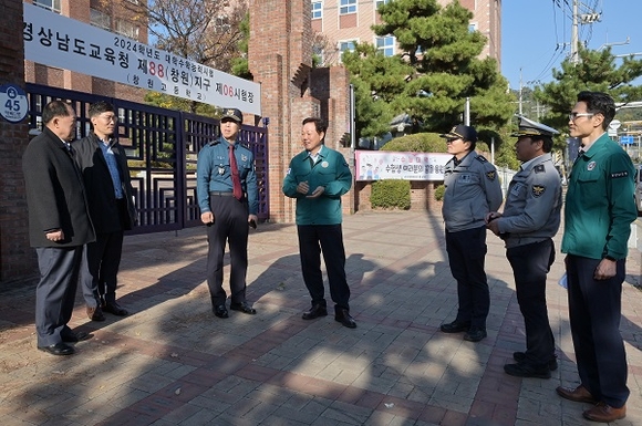 박완수 경남도지사가 대입수능시험 시험장 인근의 교통대책을 점검하기 위해 15일 오후 직접 현장 점검에 나섰다.