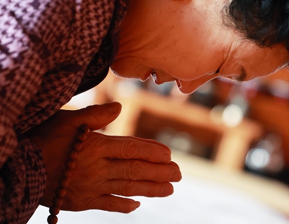 2024학년도 대학수학능력시험일인 16일 경남 함양군 보림사에서 한 할머니가 손자의 고득점을 위해 간절히 기도하고 있다. (사진=함양군 제공)