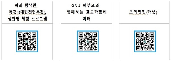 고3 학생을 위한 '2024학년도 정시 대입전형 특강', 고교학점제 이해와 선택과목 선택 방법을 점검해 볼 수 있는 'GNU 학부모와 함께하는 고교학점제 이해' 등의 특강도 진행된다. 학생부종합전형에 대한 이해와 실제 전형 대비를 위한 모의면접을 경험해 볼 수 있는 'GNU 학생대상 인앤아웃(IN&OUT) 모의전형'도 운영한다.