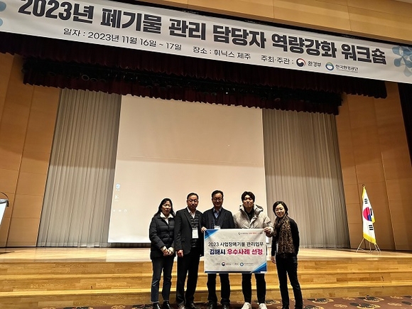 시는 환경부가 주최하고 환경공단이 주관하는 '2023년 폐기물 관리 담당자 역량 강화 워크숍'에서 우수사례로 선정된 '불법 폐기물 OUT, 클린도시 김해 조성'을 발표했으며, 담당 공무원은 환경부장관 표창을 받았다.