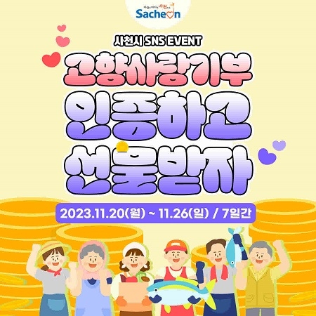 경남 사천시는 고향사랑기부제의 성공적인 정착과 기부 문화 확산을 위해 '고향사랑기부 인증 이벤트'를 실시한다고 17일 밝혔다.