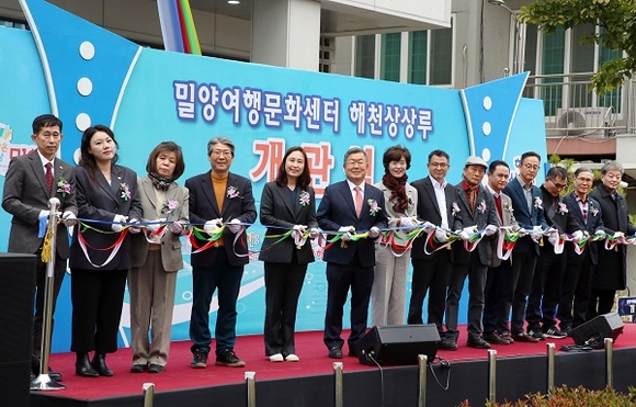 경남 밀양시는 17일 시민과 여행객을 위한 밀양여행문화센터 해천상상루의 개관식을 가졌다.