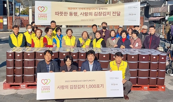 신세계 센텀시티점은 반송큰시장과 협업해 1000포기의 김장김치를 준비했으며 이를 관내 어려운 이웃 250여 세대에 전달했다.