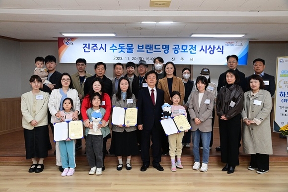 경남 진주시는 20일 깨끗하고 안전한 진주 수돗물을 효과적으로 알리기 위해 진행한 진주시 수돗물 브랜드명 공모전 당선작을 '하모수'로 확정하고 시상식을 가졌다.