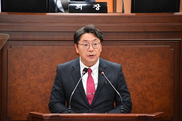 홍태용 김해시장이 21일 열린 제257회 김해시의회 제2차 정례회 시정연설을 통해 내년도 시정 운영 방향과 예산안을 발표했다.
