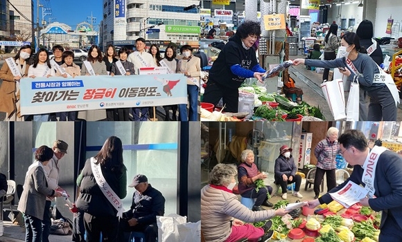 찾아가는 장금이 이동점포 행사 확대 실시에 따라 금융소비자보호부 직원들은 지난 21일 마산어시장을 찾아 상인들에게 금융사기 예방 팜플렛을 배부했다.