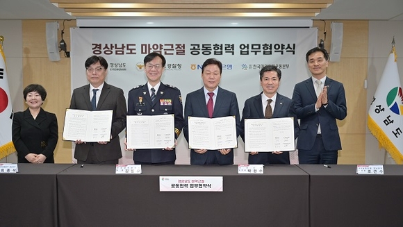 경남도는 23일 오전 도청 도정회의실에서 마약근절을 위한 공동협력체계 구축과 예방활동 추진을 위해 도 경찰청, NH농협은행 경남본부, 한국마약퇴치운동본부 경남지부와 업무협약을 체결했다.