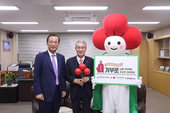 경남도교육청은 22일 오후 집무실에서 '희망2024 나눔캠페인'의 성공적인 시작을 위해 나눔의 상징인 '사랑의 열매 달기' 행사를 진행했다.