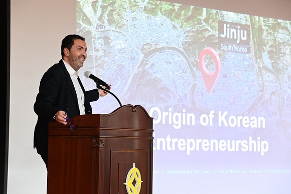 경남 진주시는 23일 오후 시청 시민홀에서 세계중소기업협의회(ICSB) 아이만 타라비쉬(Ayman Tarabishy) 회장을 초청해 '진주 K-기업가정신 특강'을 가졌다.