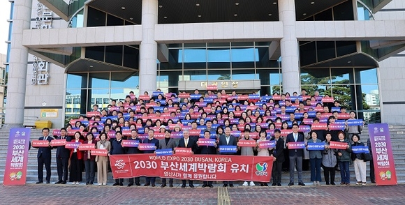 양산시는 24일 오전 시청 2층 대회의실에서 나동연 시장를 비롯한 시민통합위원회, 체육회, 유관기관, 사회단체, 공무원 등 200여명이 참여한 가운데 '2030 부산세계박람회 유치기원 행사'를 가졌다.