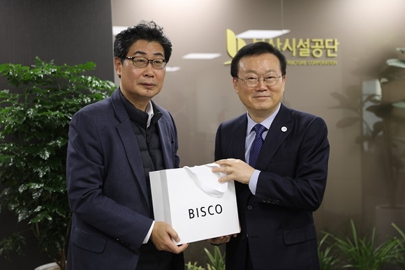 이성림 부산시설공단 이사장이 28일 신종석 부산지방조달청장을 접견하고 혁신지향적인 공공조달 방안에 대해 논의했다.