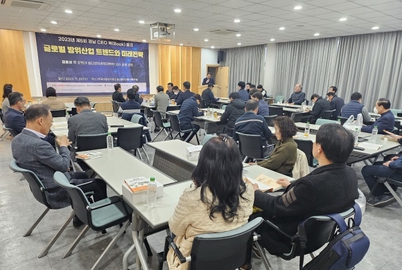 29일 오전 산단공 경남본부 6층 융합의 장에서 '글로벌 방위산업의 트렌드와 미래 전략'을 주제로 열린 이번 북토크에 기업인 등 80여 명이 참석했다.