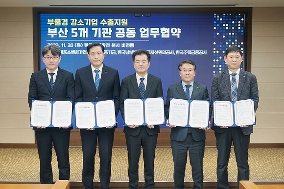 한국자산관리공사(캠코) 등 부산지역 5개 공공기관이 30일 부산국제금융센터(BIFC) 35층 한국남부발전 본사에서 ’수출 강소기업의 해외수출 지원을 위한 업무협약식’을 개최했다.