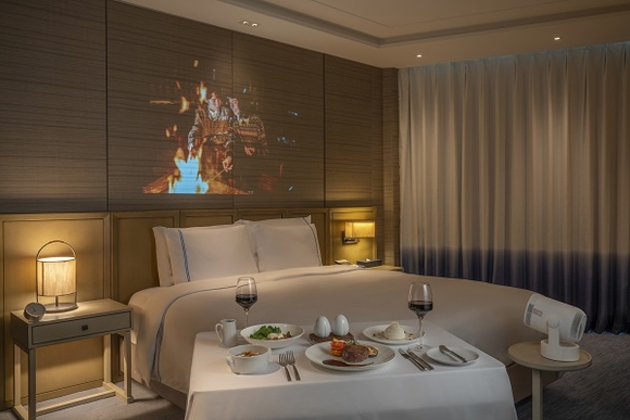 먼저 객실에서 오붓하게 영화 관람을 할 수 있는 ‘시네 드 시그니엘(Cine de SIGNIEL)’ 패키지를 출시했다. LG 시네빔(PU700R)이 설치된 객실 1박, 인룸 다이닝 스페셜 양식 풀코스 디너 2인, 치즈 플레이트와 와인 1병, 사우나 2인, 발렛 서비스 1회 구성으로 빔 프로젝터가 설치된 객실에서 온라인 동영상 서비스(OTT)로 영화와 드라마를 시청할 수 있다.