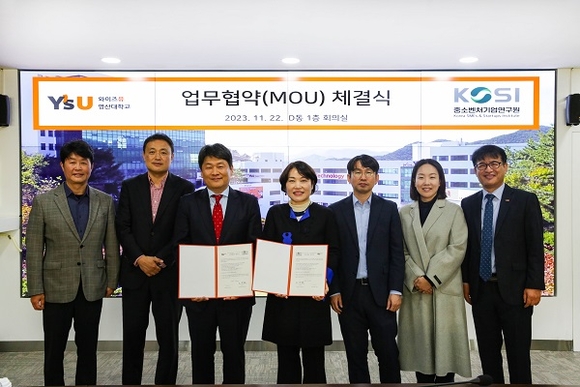 와이즈유 영산대학교 대학일자리플러스센터가 중소벤처기업연구원과 전문가 양성 및 중소벤처기업 발전을 위한 업무협약을 최근 체결했다.