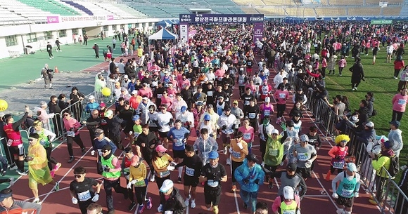 경남 양산시는 지난 3일 양산종합운동장에서 수질정화공원을 지나 황산공원 주출입구 인근까지 달리는 코스로 진행한 마라톤대회에 참가선수 6012명(하프 1796명, 10km 2415명, 5km 1801명)과 운영인력 및 자원봉사자 500여명이 참여했다고 밝혔다.