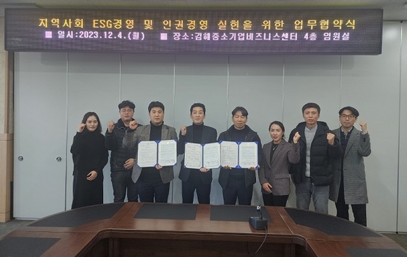 김해시도시개발공사와 김해시복지재단, 김해의생명산업진흥원은 지난 4일 김해중소기업비지니스센터 4층 임원실에서 '지역사회 ESG 및 인권 경영 추진을 위한 업무협약'을 체결했다.