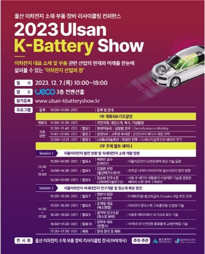 올해 처음 개최된 이번 행사는 울산의 국가첨단전략산업 이차전지 특화단지 지정(2023년 7월 20일)과 연계해 이차전지 산업의 현재와 미래를 한눈에 살펴볼 수 있는 ‘이차전지 산업의 장’으로 마련됐다.