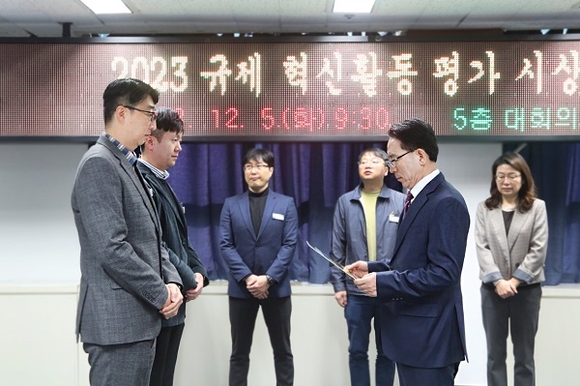 부산진해경제자유구역청(부산진해경자청)이 지난 5일 청사 대회의실에서 ‘2023년 규제혁신 활동 평가 시상식’을 개최하고 우수 사례 4건을 선정해 포상했다고 밝혔다.