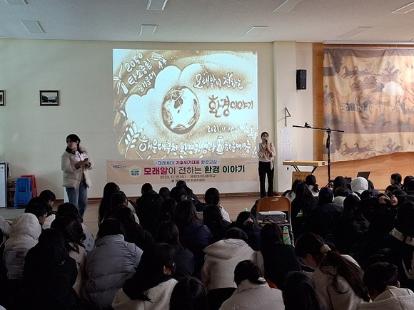 부산 해운대구가 청소년들의 환경의식을 높이기 위해 관내 중학교를 찾아가 ‘모래알이 전하는 환경 이야기’ 환경교실을 진행했다.