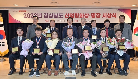 경남도는 8일 오후 도청 중회의실에서 수상자 및 가족 등 60여 명이 참석한 가운데 '2023년 경상남도 산업평화상 및 명장 시상식'을 가졌다.