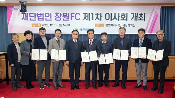 경남 창원시는 11일 시청 시정회의실에서 이사장(시장)과 이사회 임원진 등 10명이 참석한 가운데 '재단법인 창원FC 제1차 이사회'를 가졌다고 밝혔다.