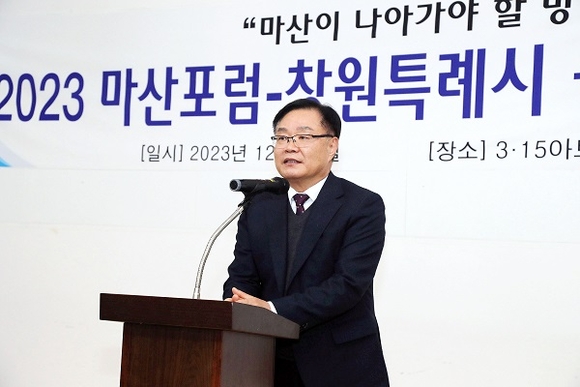 홍남표 창원시장은 12일 마산 3.15아트센터 국제회의장에서 열린 '2023 마산포럼-창원특례시 공동정책 세미나'에 참석했다.