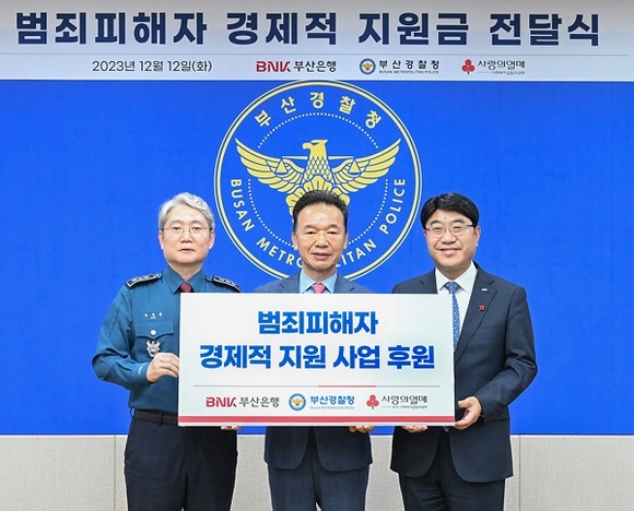 BNK부산은행이 12일 부산경찰청에서 부산사회복지공동모금회와 함께 ‘범죄 피해자 경제적 지원 사업’ 후원금 전달식을 가졌다고 밝혔다.