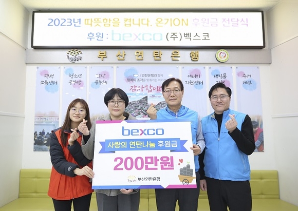벡스코가 지난 12일 부산연탄은행에 연탄 나눔지원을 위한 후원금 200만원을 전달했다고 밝혔다.