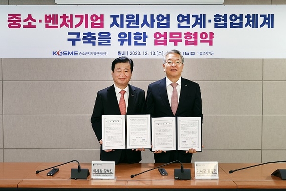 기술보증기금(기보)이 중소벤처기업진흥공단(중진공)과 13일 기보 부산 본사에서 ‘중소벤처기업 지원사업 연계·협업체계 구축을 위한 업무협약’을 체결했다고 밝혔다.