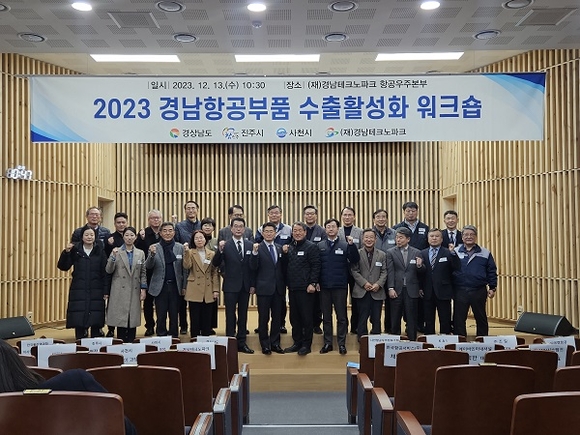 경남테크노파크(이하 경남TP)는 13일 경남 사천의 항공우주본부 국제회의실에서 글로벌 항공시장 현황 및 항공 부품 수출 방안과 함께 우주산업 발전전략을 공유하는 '2023년 경남항공부품 수출 활성화 워크숍'을 개최했다.