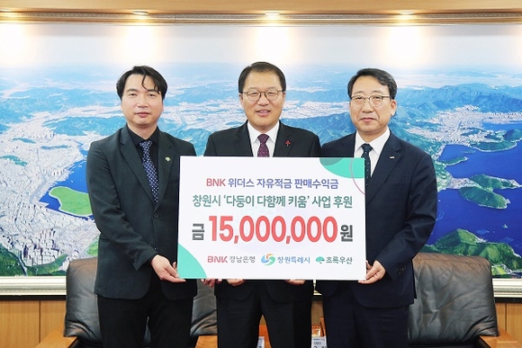 경남은행은 지난 8월 'BNK위더스(With-Us) 자유적금'을 출시해 판매한 수익금 일부 1500만원을 창원시민 사랑나눔 '다둥이 다 함께 키움' 지원 사업에 1호로 기탁했다.